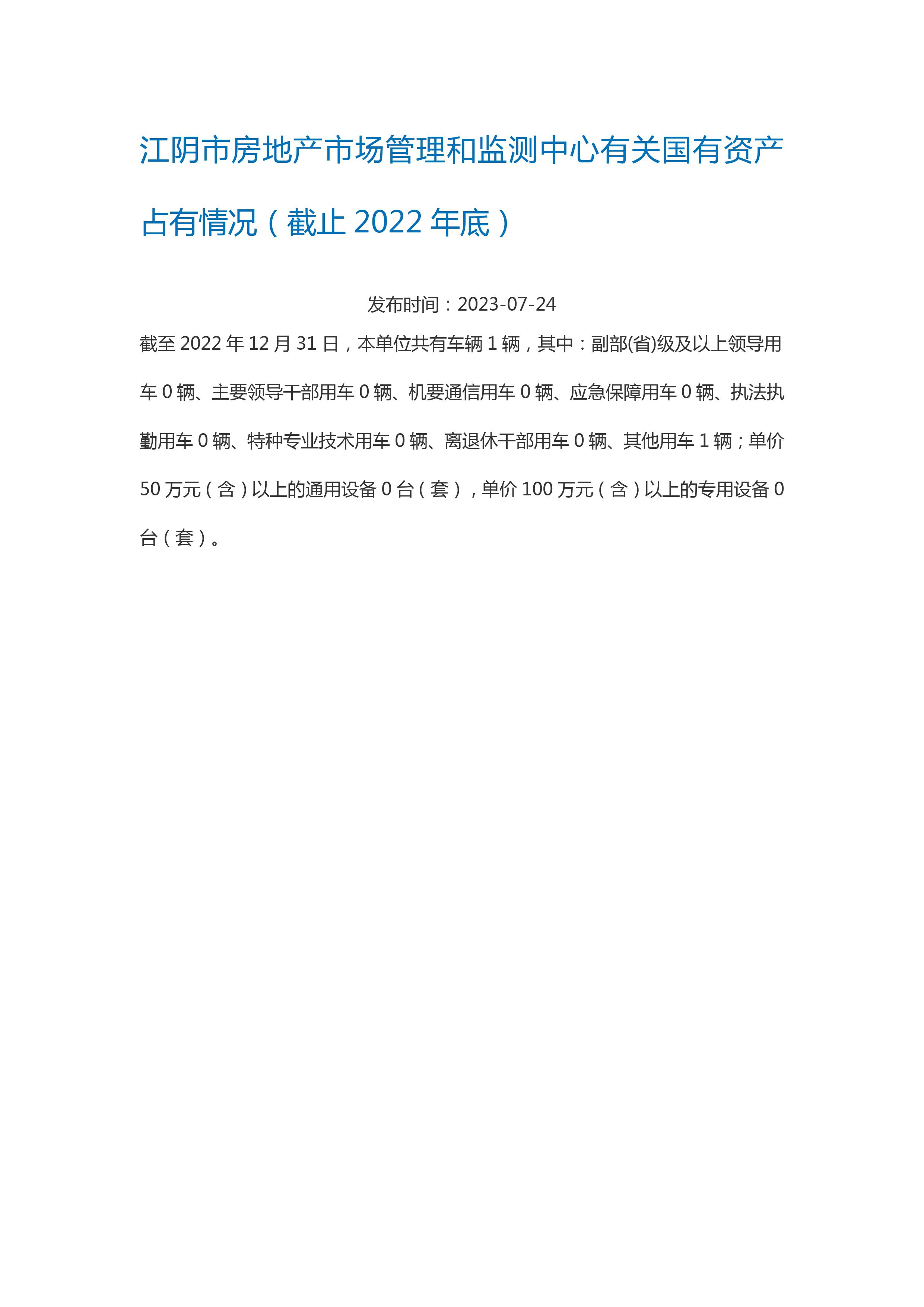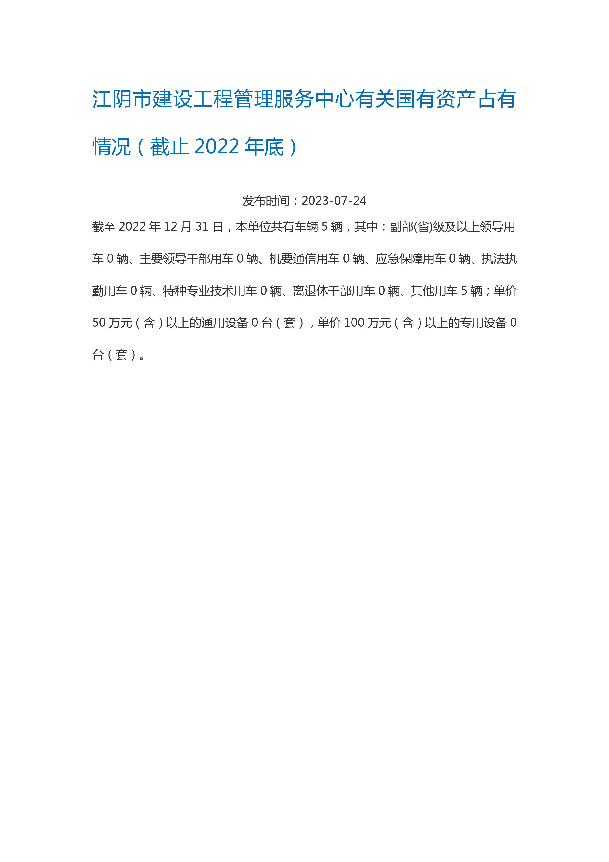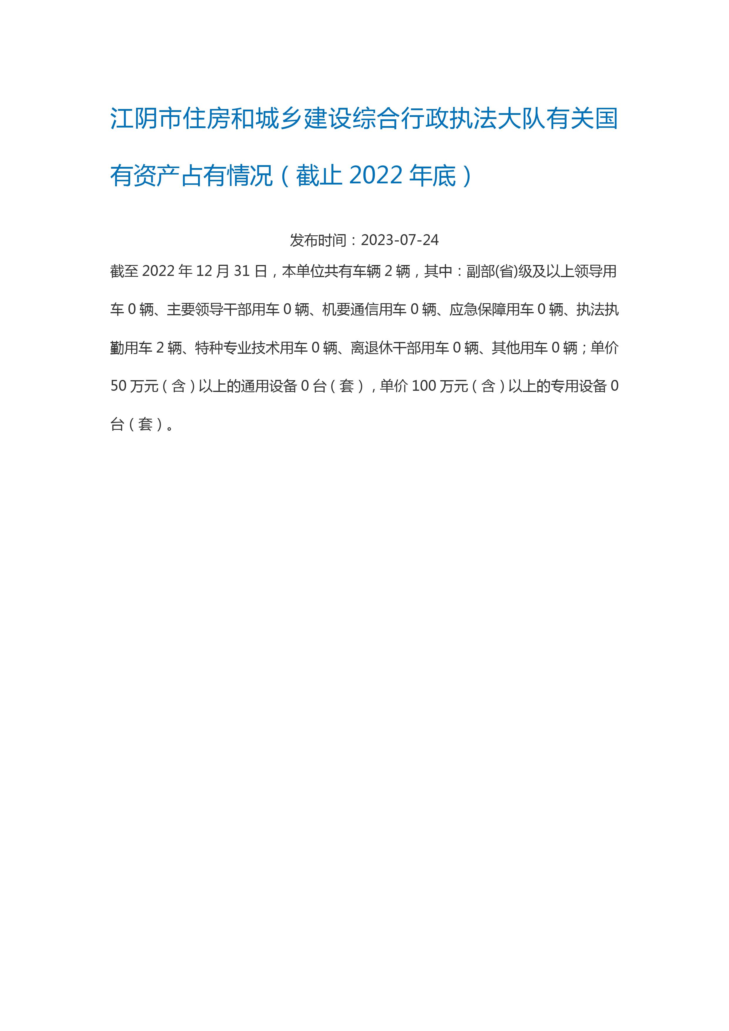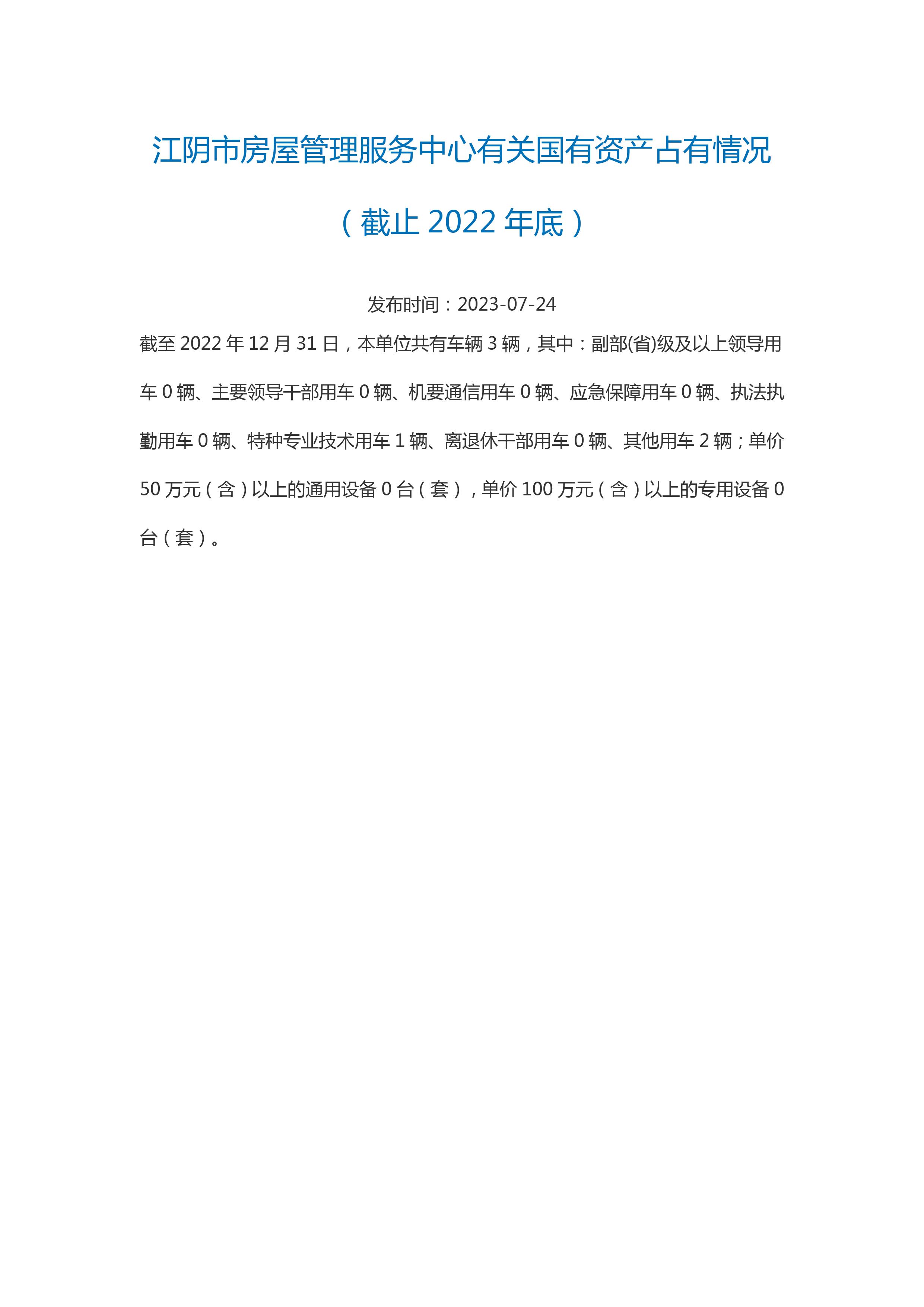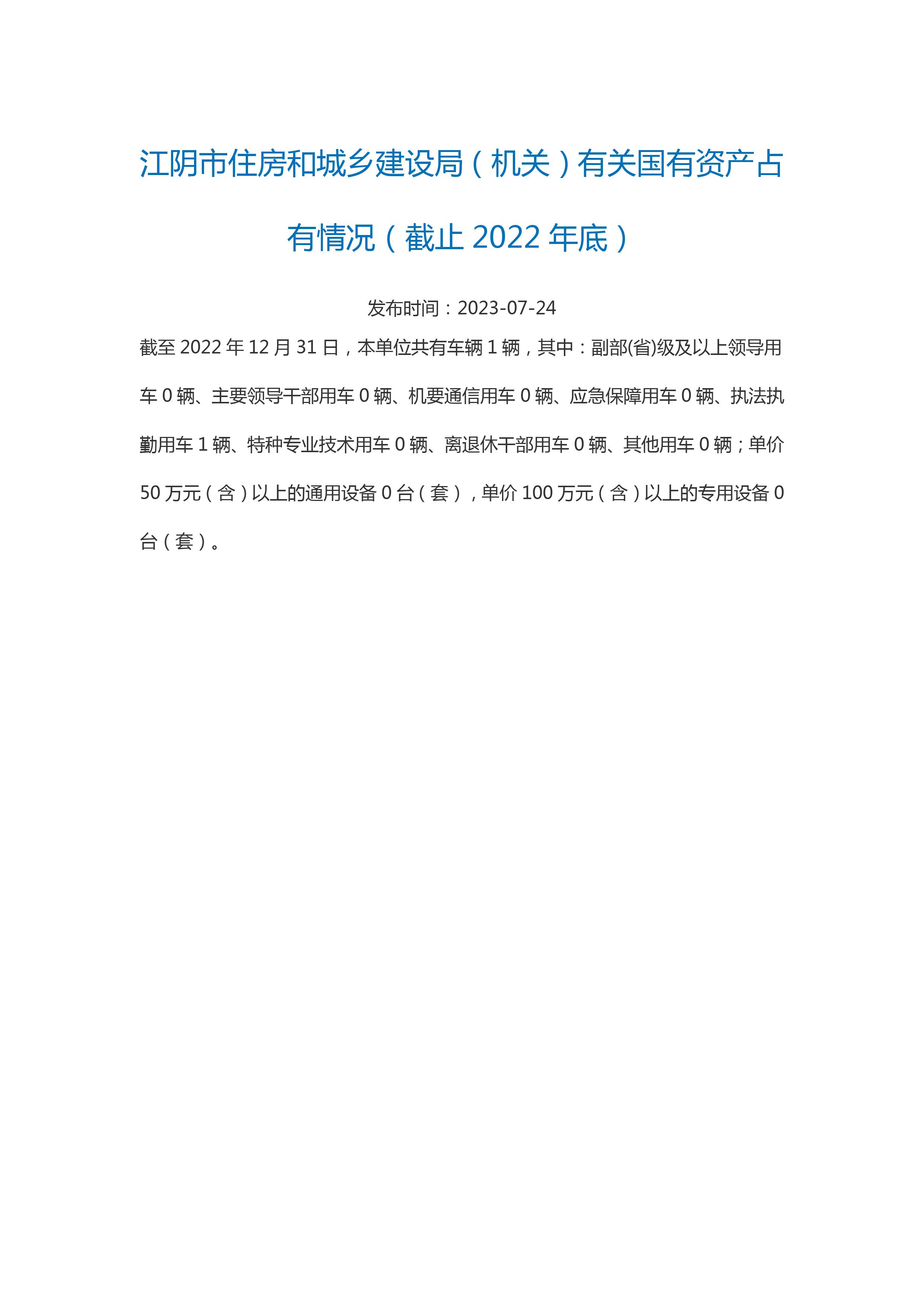 內容概述 江陰市住房和城鄉建設局2022年有關國有資產占有情況