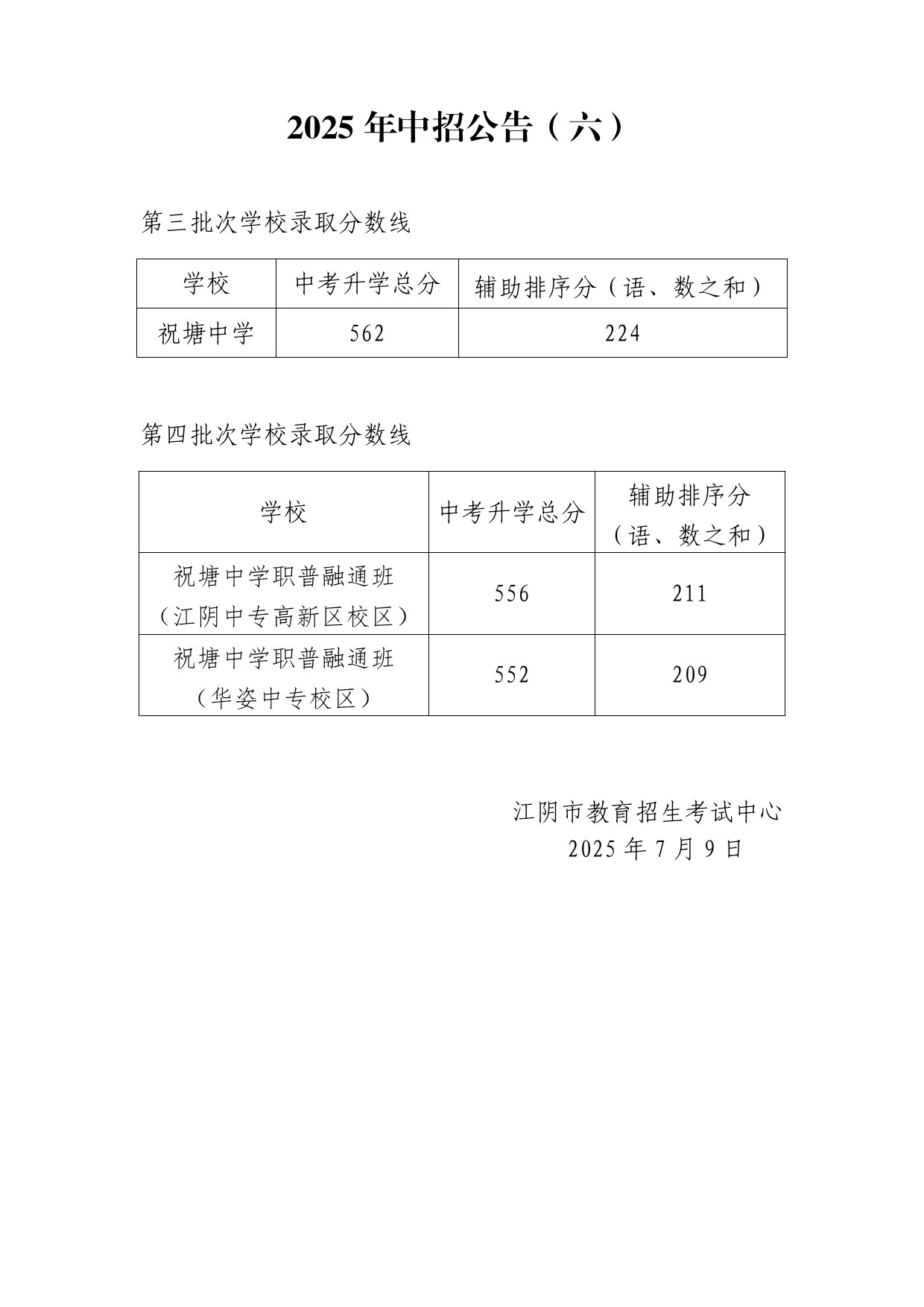 2025年中招公告(六)