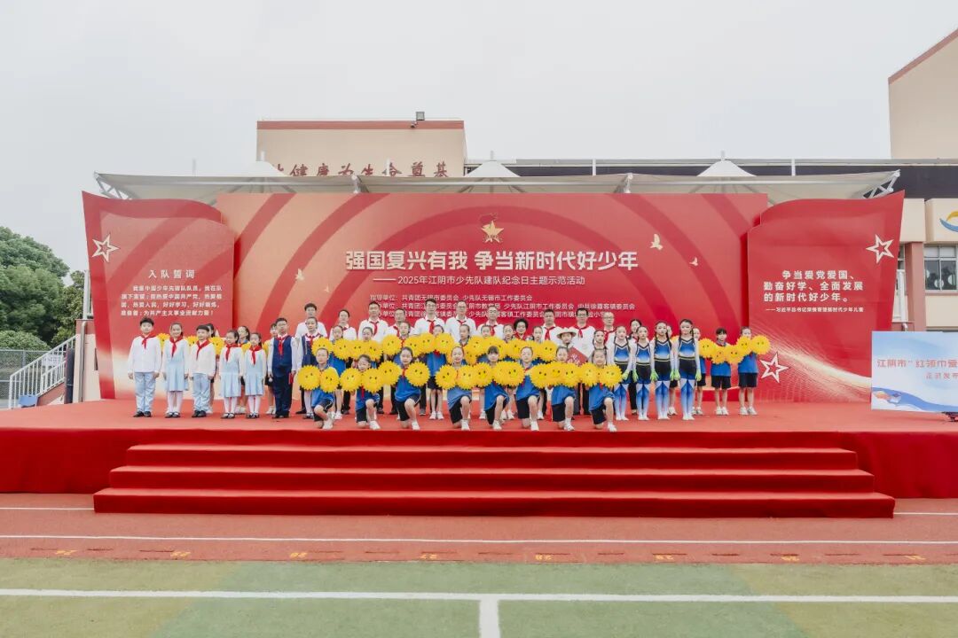 10月13日,“強國復興有我 爭當新時代好少年”——2025年江陰市少先隊建隊紀念日主題活動在江陰市璜塘實驗小學舉行。活動向全體少先隊員致以節日的問候,希望隊員們傳承紅色基因,將“強國復興有我”的誓言化作行動,為家鄉爭光、為祖國添彩!在莊嚴的入隊儀式上,215名新隊員佩戴上鮮艷的紅領巾,在隊旗下莊嚴宣誓,正式加入中國少年先鋒隊。杰出校友陸生禮深情寄語新隊員熱愛閱讀、熱愛科學、熱愛祖國。“時刻準備著!”嘹亮的呼號聲,吹響了隊員們新征程的號角。