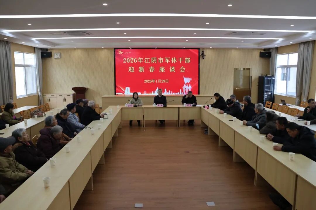 1月29日上午,江陰舉行軍休干部迎新春座談會,軍休干部代表齊聚一堂,喜迎新春,共話未來。會議通報了2025年全市退役軍人事務工作情況和2026年重點工作。副市長翟菁參加活動。