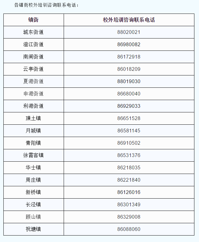 學科類校外培訓:江陰市教育局 86862219、86862217