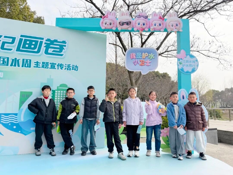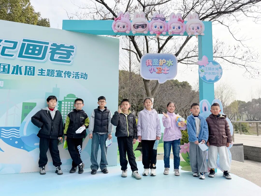 主題打卡區(qū)里,印著中國水周主題的背景板搭配趣味打卡場景,吸引了大小朋友紛紛合影。參與者們拍照發(fā)朋友圈、抖音,帶上#江陰水網(wǎng) 護水同行#話題,即可領(lǐng)取定制小禮品。大家笑容洋溢,在輕松打卡中為江陰水網(wǎng)建設(shè)宣傳助力。